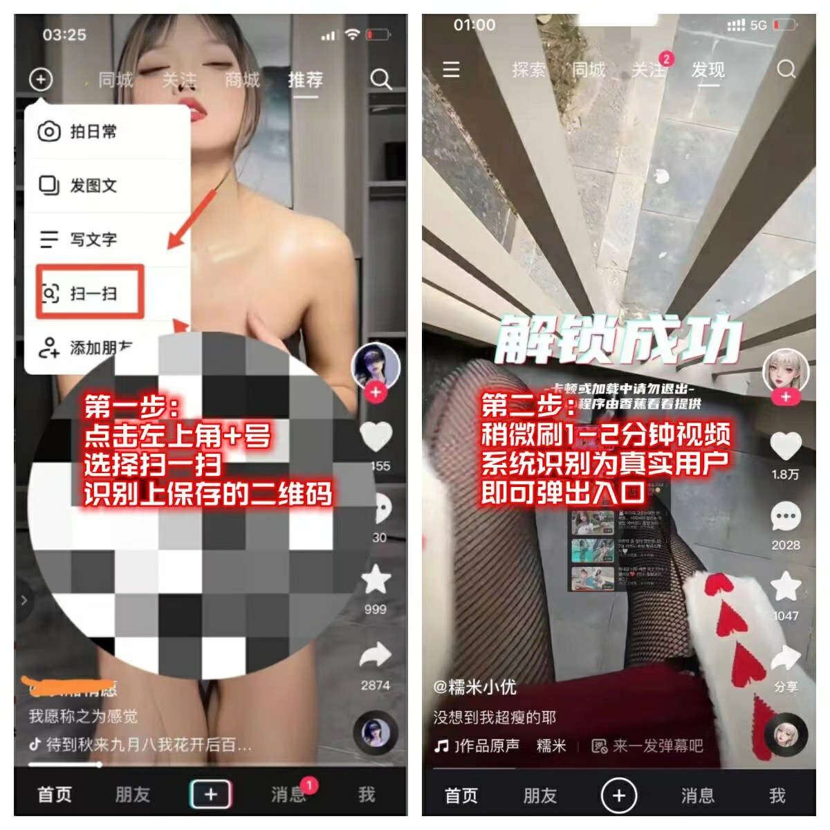 /扫码没进多扫两遍。极少不活跃用户需次日打开抖音后(增加活跃)在扫可进。今日没弹入口多扫两次进备用渠道!